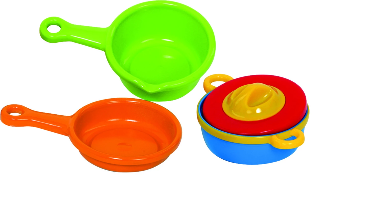 Met deze pannenset, bestaande uit een kookpan met deksel, steelpan en koekepan, kan uw kind in zijn eigen keukentje de lekkerste gerechten bereiden. En misschien wordt je wel uitgenodigd om te komen smikkelen?