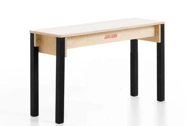 Lessenaar Large met opbergvak onder het speelblad. Deze lessenaar biedt plaats aan één of desgewenst twee kinderen. De lessenaar wordt geleverd met 4 extra korte poten waardoor deze (later) tevens als 3-zits opbergbankje gebruikt kan worden. 3-zits lessenaar Large met opbergruimte L 112 cm x B 35 cm x H 60 cm. De lessenaar is uitgevoerd in berkenmultiplex en afgewerkt met een kind- en milieuvriendelijke transparante matte lak. De beukenhouten poten zijn afgewerkt met een mat zwarte lak.