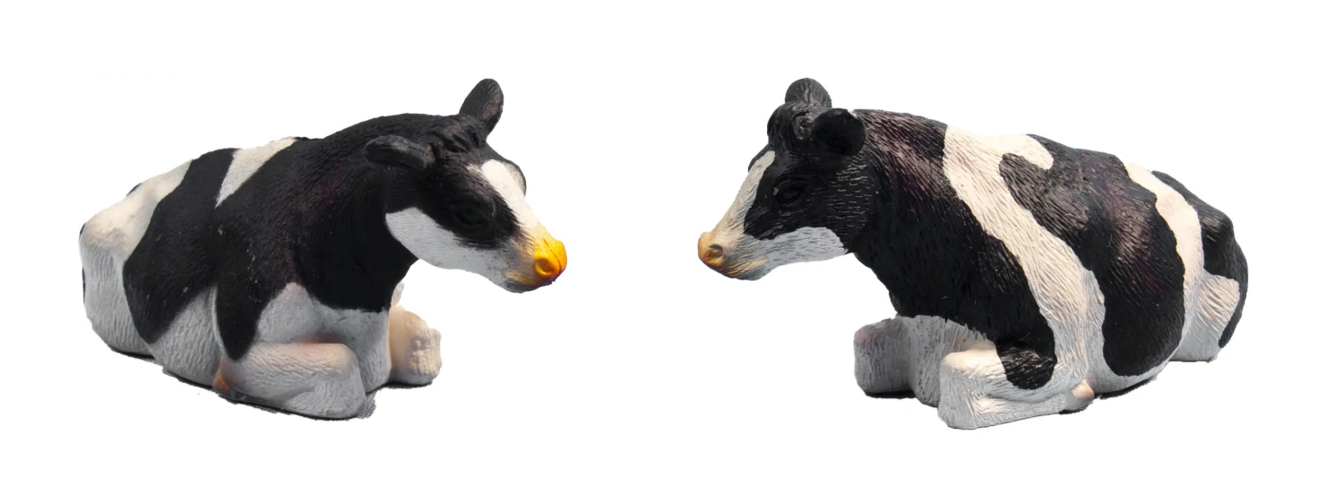 Set van 2 liggende koeien (kunststof) schaal 1 : 32.