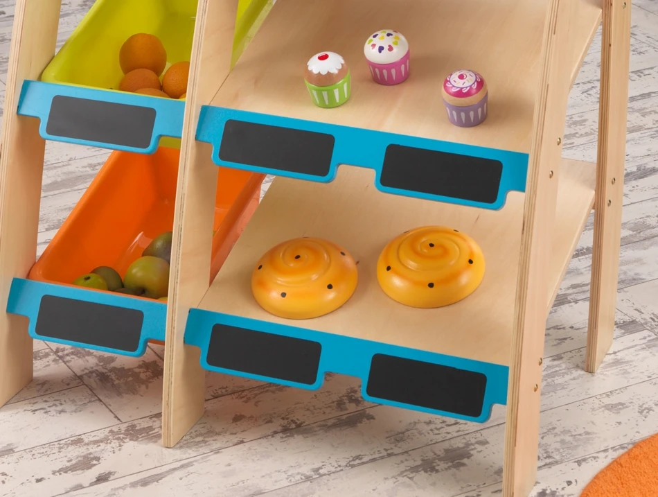 De Kidkraft Marktkraam is de ideale speelplek voor kinderen om winkeltje te spelen. Hij is uitgevoerd met een pinkassa + kassalade die open en dicht kan en biedt voldoende ruimte om alle koopwaar uit te stallen.