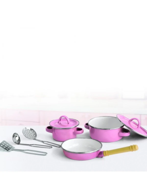 Pannenset Emaille Rose 8-delig