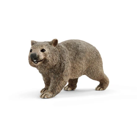 Wombats zijn kleine buideldieren met een plompe lichaamsbouw die op het Australische continent voorkomen. Als ze net niet grazen, leven de kleine zoogdieren onder de grond, waar ze holen en gangen hebben gegraven. Om te kunnen graven hebben ze tanden als die van knaagdieren en aan hun poten hebben ze sikkelvormige klauwen, net als de wombat van Schleich® Wild Life.