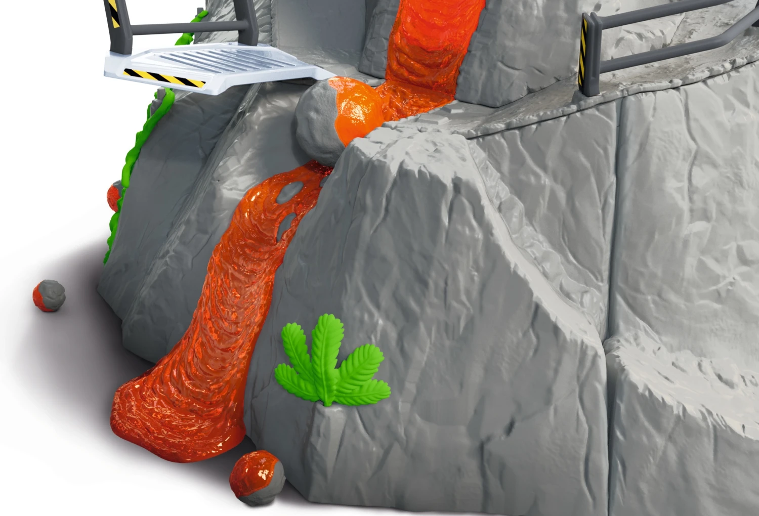 Onderzoekster Yuki van de grote vulkaan-expeditie van Schleich® Dinosaurs verzamelt in haar onderzoekscontainer alles over dinosaurussen. Plotseling hoort ze een hard gerommel, de hele berg trilt en er stijgt rook op! Ze reageert pijlsnel en springt op haar vluchtglijbaan die haar naar een geheime grot onder de vulkaan brengt. Nog net op tijd, want de vulkaan breekt uit! Met de uitbraakfunctie kunnen stenen uit de vulkaankrater worden geslingerd. Bovendien trilt de vulkaan en stijgt er rook op. De LED-lichtfunctie die zowel in de lavastroom als in enkele stenen is geïntegreerd, zorgt voor een spannende speelsfeer! Voor extra actie is er aan de achterkant van de vulkaan een hindernisparcours. Het hoogtepunt van de vulkaan-expeditie zijn de twee dinosaurussen in een speciale uitvoering die bij de speelset zijn inbegrepen. Verder zijn er 3 AA- batterijen nodig. Deze zijn niet bij de set inbegrepen.