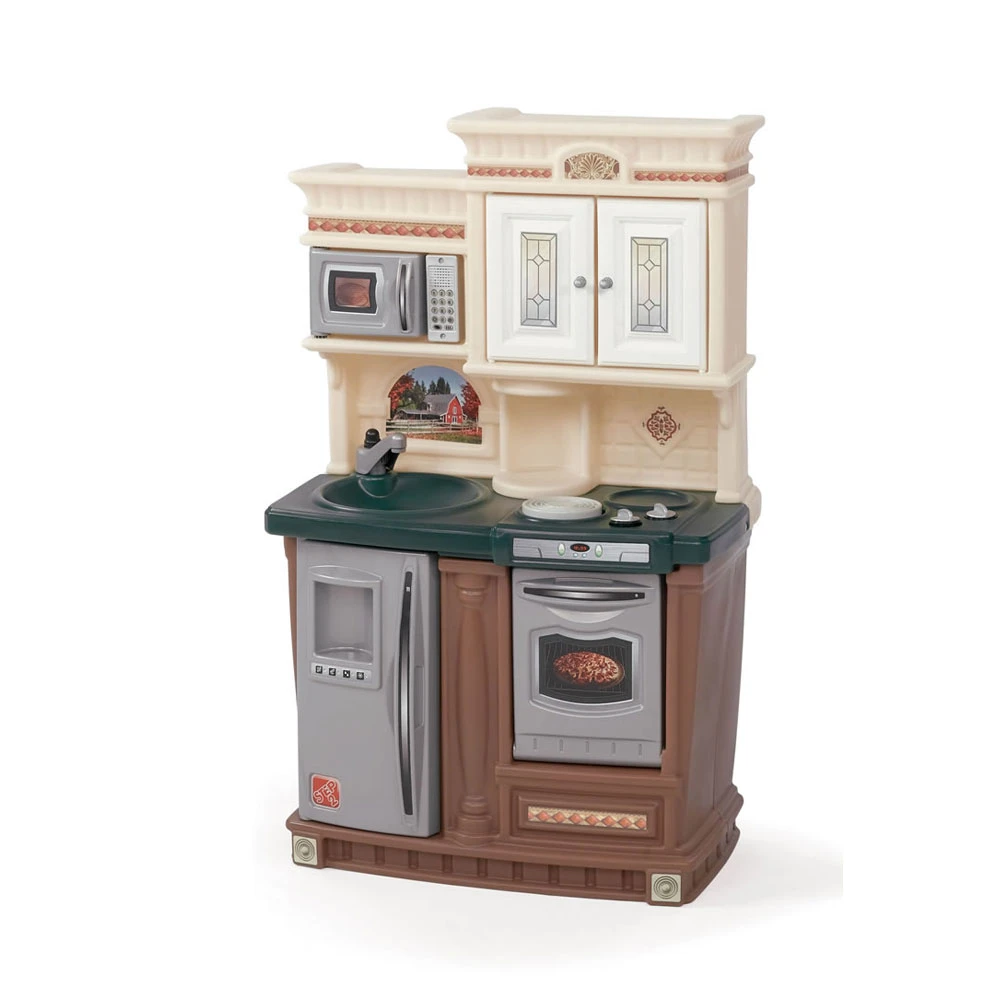Creatieve kinderen zullen deze speelkeuken geweldig vinden. In oude stijl weergegeven maar van alle moderne gemakken voorzien; speelgoed oven, koelkast, magnetron, speciale frituurpan en kookpotje met “echte” geluiden (excl. batterijen) en een koffiepot met ingebouwd koffiezetapparaat.