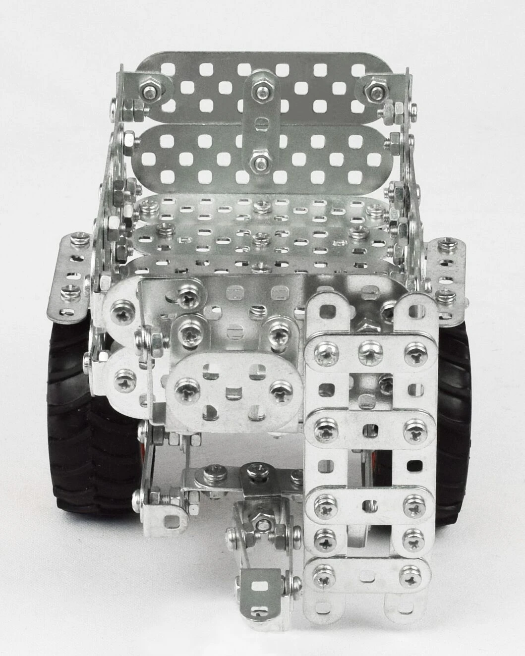Bouwdoos met 744 onderdelen uit de Tronico Mini serie. Betreft de tractor New Holland T4 met aanhangwagen..