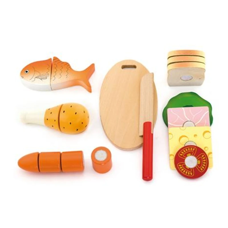 Een leuke 17-delige houten snijset waarvan de diverse delen met klitteband zijn verbonden. Het geheel wordt geleverd in een houten kistje met deksel.