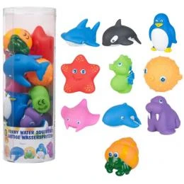 Koker met 10 vrolijke badvriendjes;Β 10 verschillende zeedieren met een vrolijk kleurtje die bij het spelen in bad water spuiten.